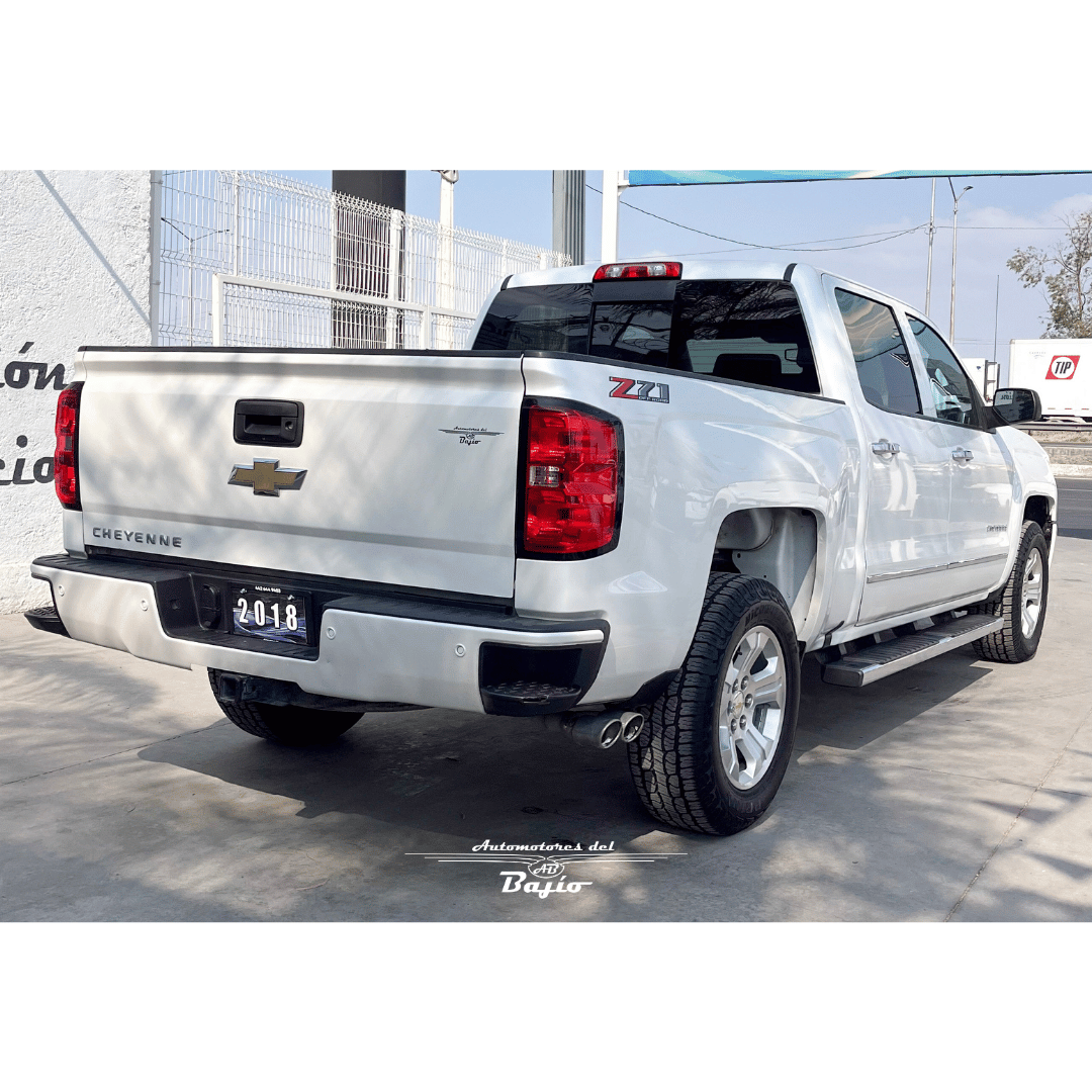 Hoy es una nueva oportunidad para realizar nuevas hazañas, toma el control de Chevrolet Cheyenne® 2018 y escribe tu nombre en la historia. La fuerza esta en la seguridad, tiene el espacio que mereces Motor: 5.3L V8 Potencia: 355 hp @ 5,600 rpm Torque: 383 lb-pie @ 4,100 rpm Dirección: electrónica Transmisión automática con modo manual a 6 velocidades Suspensión todo terreno Z71 4X4