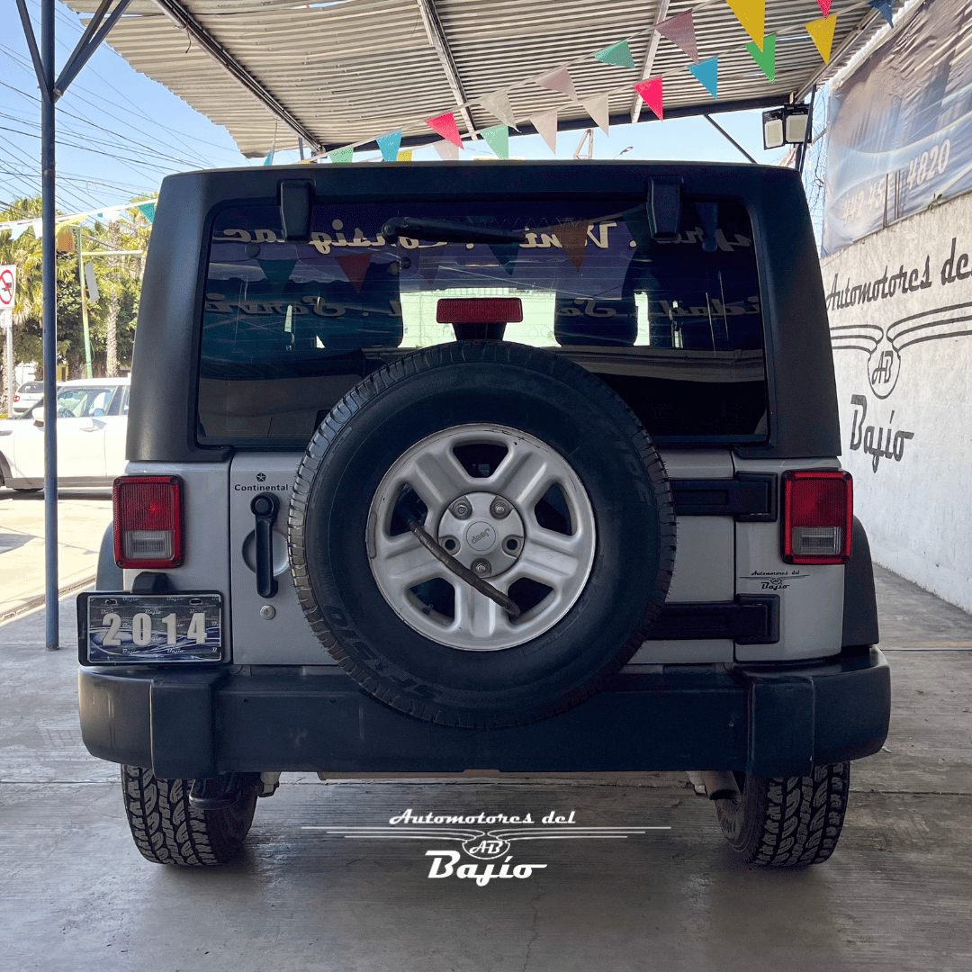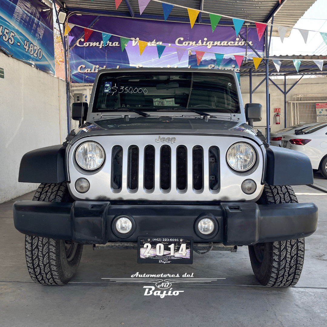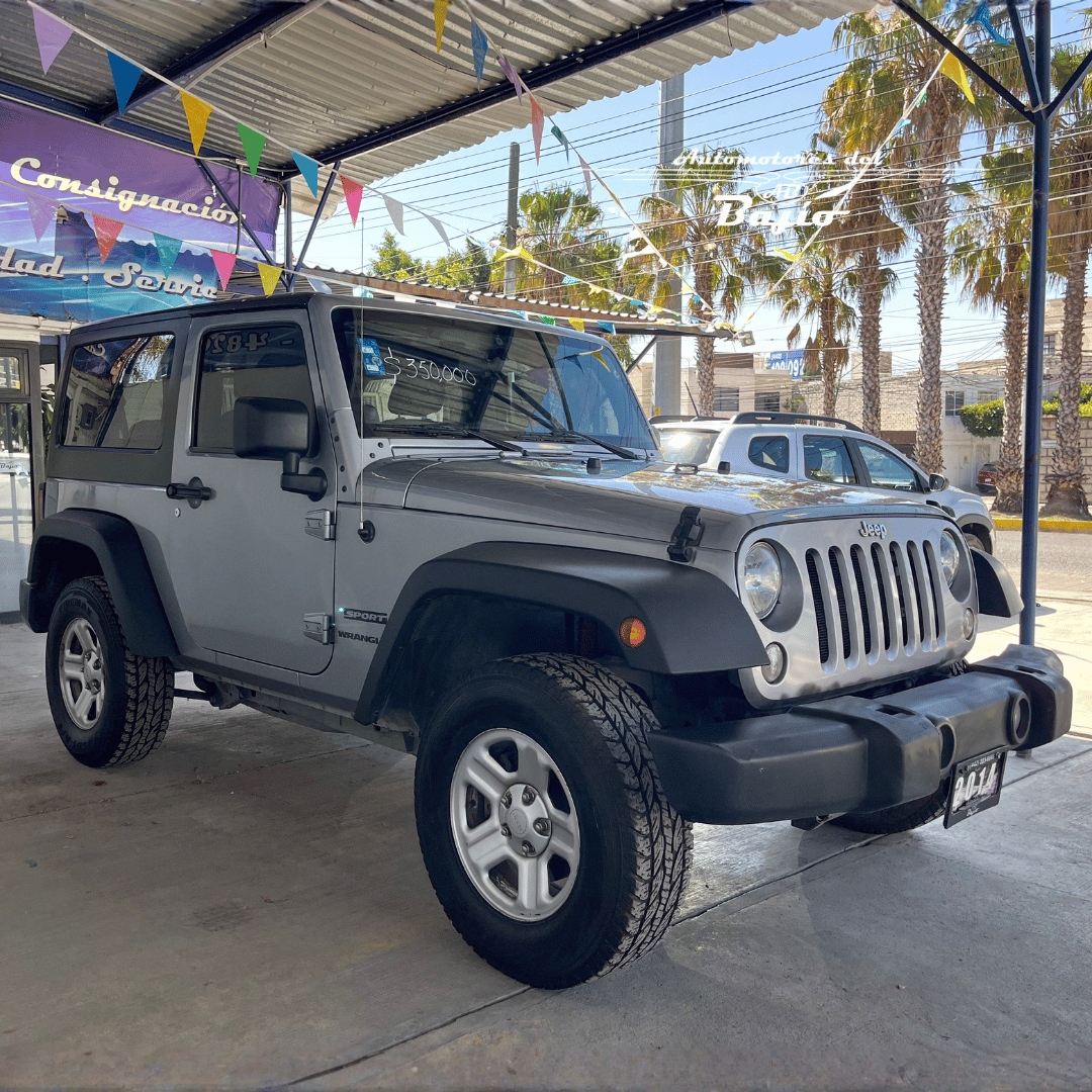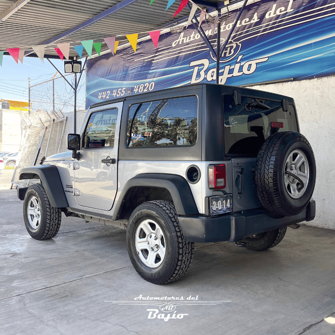 El Jeep Wrangler Sport 2014 es un todoterreno icónico, reconocido por su robustez y capacidad 4x4, equipado con un motor Pentastar V6 de 3.6L que ofrece 285 caballos de fuerza.